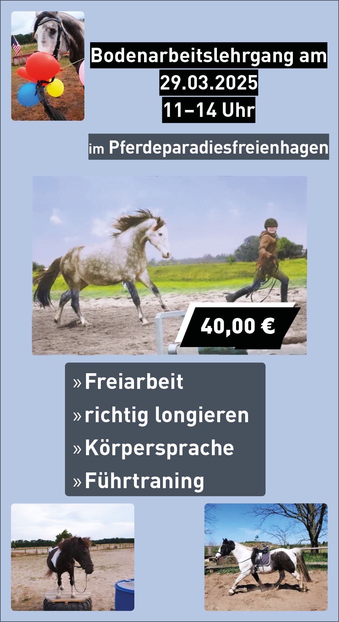 Am 25.11. ab 11 Uhr gebe ich einen Bodenarbeitslehrgang im Pferdeparadiesfreienhagen
